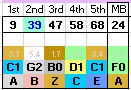 The darker shaded background in each of the 5 columns reflects an area of that column that hits more often. Play five numbers with a good mix of blue, darker gray, & lighter gray backgrounds.