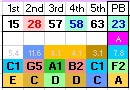 Play two or three numbers with BEST background Colors ( Yellow, Blue, or Green ) in column G. These colors hit more often. However, for BEST Grades ( A1 vs. B1 vs C1 etc. ) – think of it like a classroom – there are a lot more C students than A & B students, but I’m playing A & B when they’re overdue or favored. Pay attention to overdue Grades in the CHEAT SHEET table ( look for best Grade combos there too ).