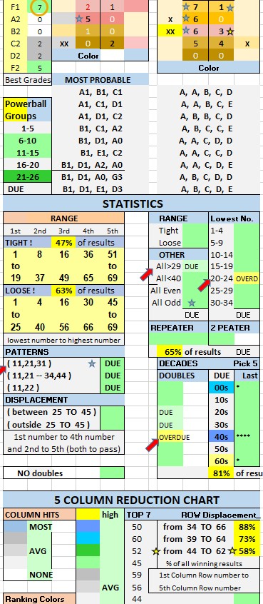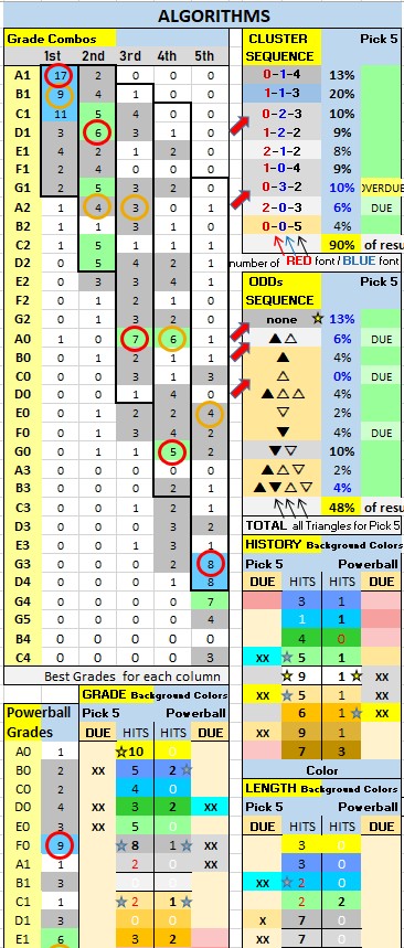 7. LOOK at the Grade Combos table… Consider this info when picking Grades for each number (1st to 5th column) in your five number combo. The BEST Grade Combos are listed under Most Probable (use the Grade Combos table for the best GRADE choices (for each column)..